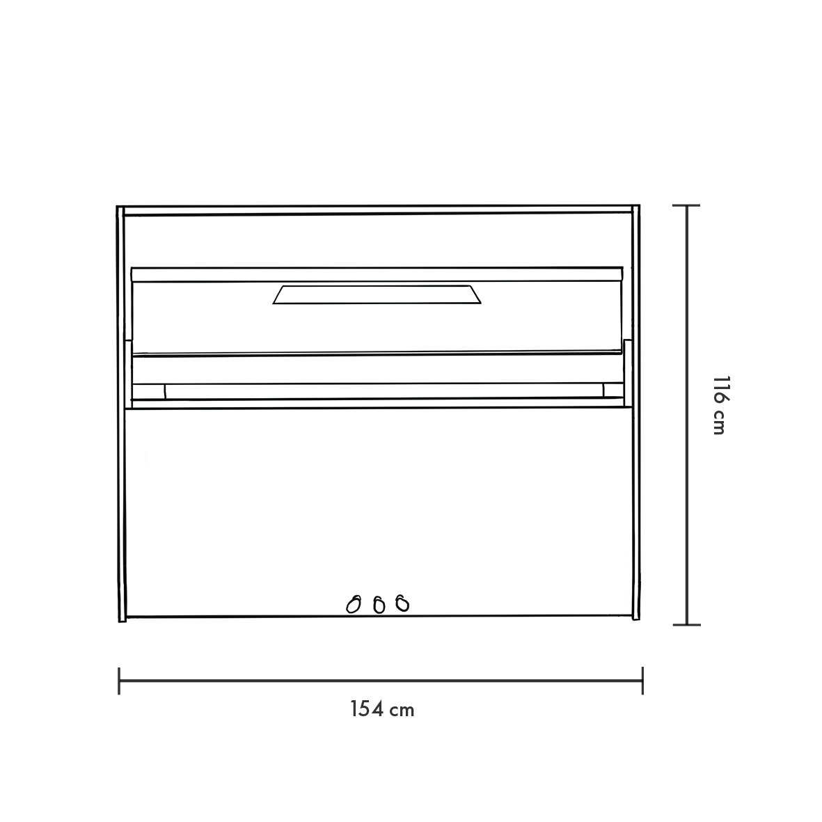hauteur : 116 cm largeur : 154 cm profondeur : 60 cm poids : 190 kg
