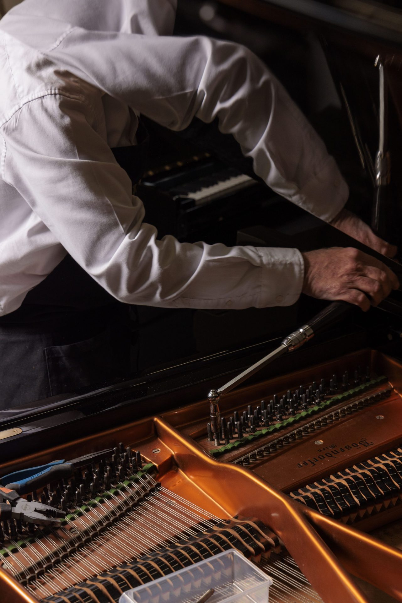 Depuis plus de trente ans, elle prépare, restaure et sélectionne des pianos droits ou à queue avec le même soin.